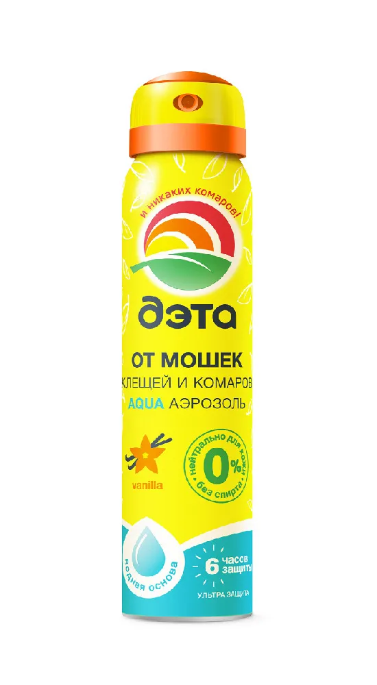 - Аэрозоль ДЭТА Аква от комаров,клещей,мошек 100мл