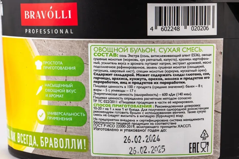 - Бульон овощной, сухая смесь Bravolli Professional 2 кг