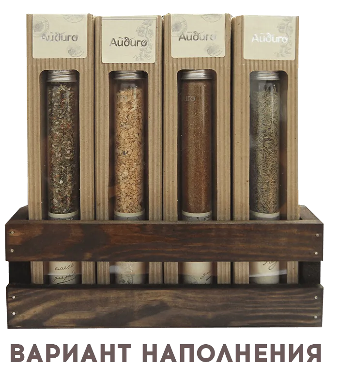 Отличный вариант подарочной упаковки для пряностей, вам останется только выбрать подходящие для вас колбы с нужными приправами. В дальнейшем в ящике можно продолжать хранить колбы или другие кухонные принадлежности. Подарок в ящике точно произведет положительное впечатление! Деревянный ящик ручной работы отлично впишется в интерьер вашей кухни, став стильным аксессуаром.
