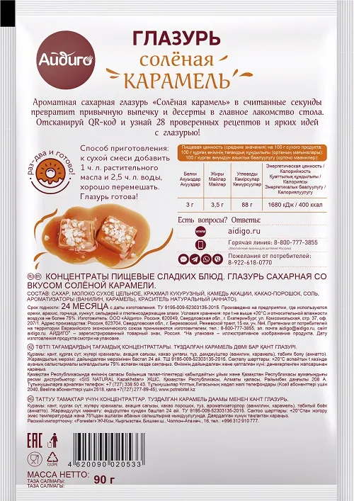 Глазурь сахарная со вкусом соленой карамели Айдиго - срок годности до 11 июня 2026.