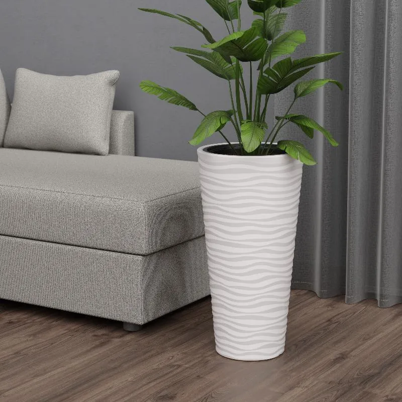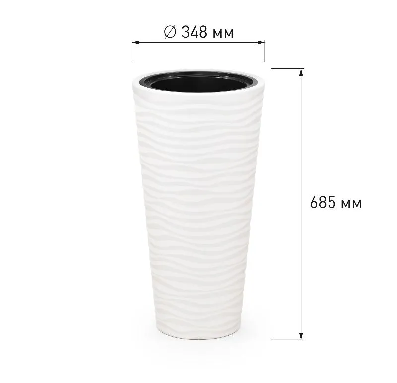 Внешний объем кашпо в 43 литра обеспечивает достаточно места для развития корневой системы даже крупных растений. Это способствует их здоровому росту и обильному цветению. Кашпо изготовлено из прочного и долговечного пластика, устойчивого к воздействию ультрафиолета, перепадам температур и влажности. Это гарантирует его долгий срок службы и сохранение привлекательного внешнего вида.