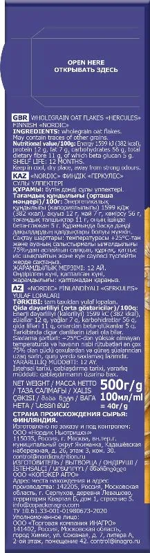- Хлопья Nordic овсяные Геркулес