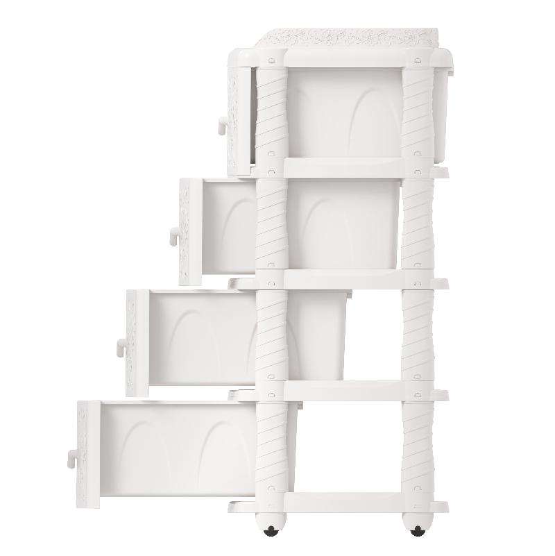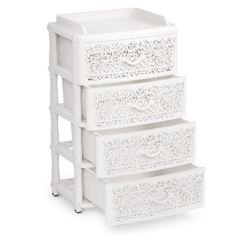 Четыре вместительные секции позволяют удобно разместить и хранить широкий спектр вещей, начиная от одежды и текстиля, заканчивая игрушками и предметами быта. Прочность и долговечность комода обеспечиваются использованием полипропилена высокого качества. Этот материал устойчив к влаге, механическим повреждениям и ультрафиолетовому излучению, что делает комод подходящим для использования в различных помещениях, включая ванные комнаты и балконы. Легкость в уходе - еще одно неоспоримое преимущество полипропилена: достаточно протереть поверхность влажной тряпкой, чтобы вернуть ей первоначальный вид.