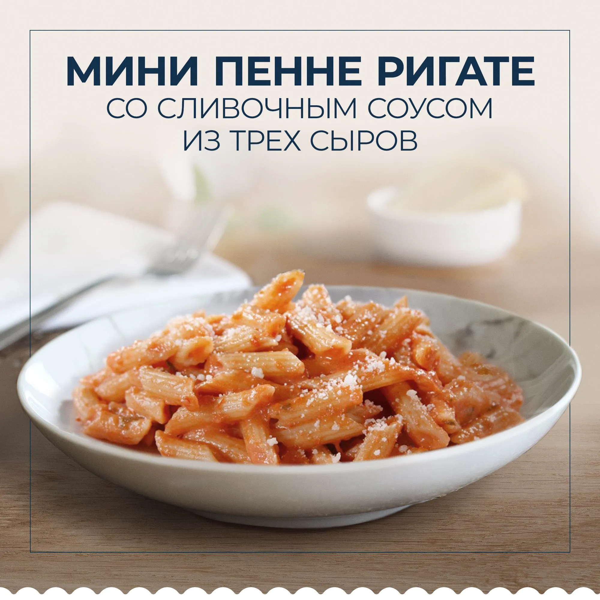 Изготавлены на основе муки из твердой пшеницы продукт доводится до готовности в течение 6 минут. Паста не нуждается в дополнительном промывании благодаря применению при производстве очищенной воды.