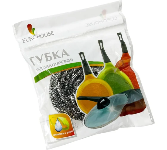 Металлическая мочалка «Спираль» Еврохаус - надежный инструмент для очистки любых видов кухонной посуды и столовых приборов.