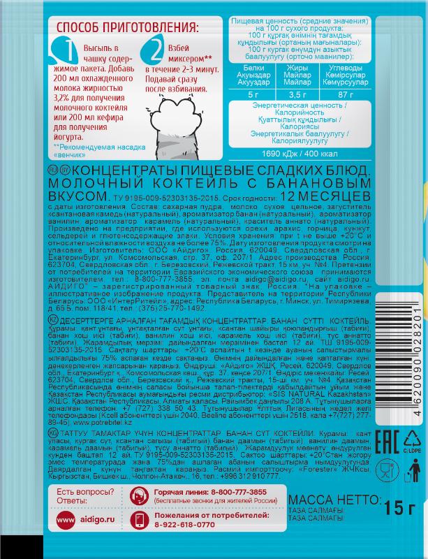 - Молочный коктейль "Банановый" Айдиго на 1 порцию