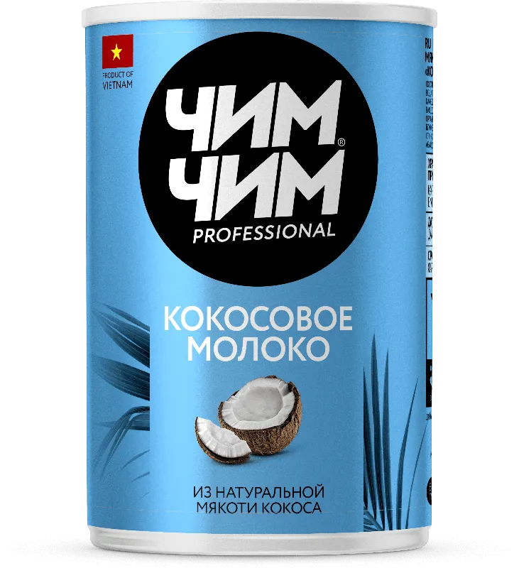 Натуральный продукт на 82% состоит из мякоти созревшего кокоса. Кокосовое молоко Чим-Чим не содержит сахара, красителей, ароматизаторов и консервантов. Высокий процент жирности - 17%.