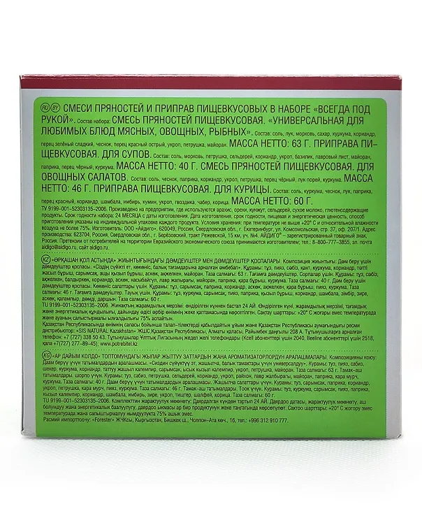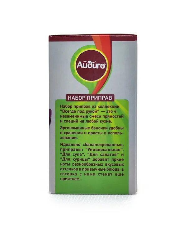 Набор приправ “Всегда под рукой” — это самые необходимые смеси натуральных пряностей, специй и овощей, которые пригодятся на любой кухне.