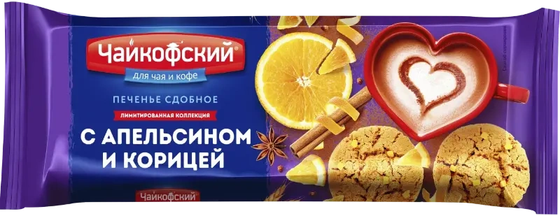 Чайкофский Печенье сдобное с апельсином и корицей - это рассыпчатое и хрустящее сдобное печенье, приготовлено по традиционному рецепту с добавлением ароматного апельсинового вкуса и волшебства пряной корицы. Каждый кусочек порадует вас непревзойденным вкусом и создаст атмосферу домашнего тепла и комфорта.