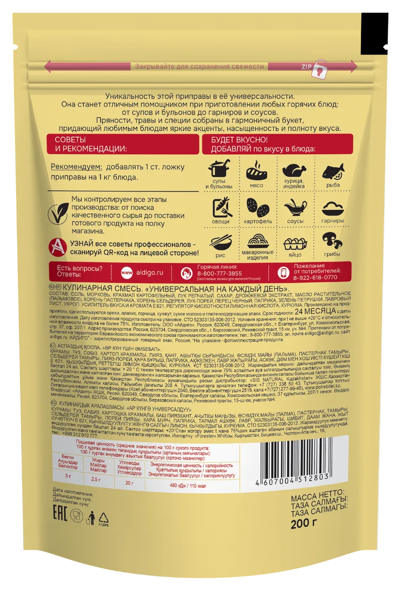 Рекомендуем добавлять 1 ст.ложку приправы на 1 кг. блюда.