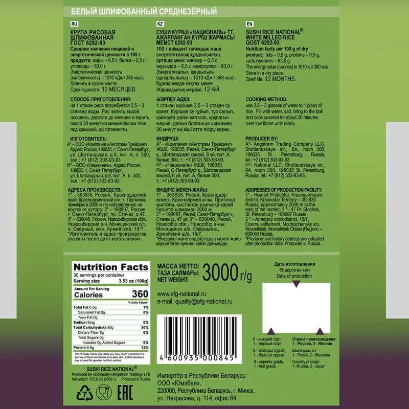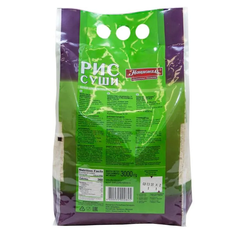 Рис для суши среднезерный 3 кг/пакет, высший сорт, ГОСТ Националь специально предназначен для приготовления идеальных суши и роллов. Среднезерный сорт риса обладает необходимой клейкостью после варки, что делает его оптимальным выбором для формирования аккуратных и красивых суши. Высший сорт гарантирует высокое качество продукта, соответствующее строгим стандартам ГОСТ.