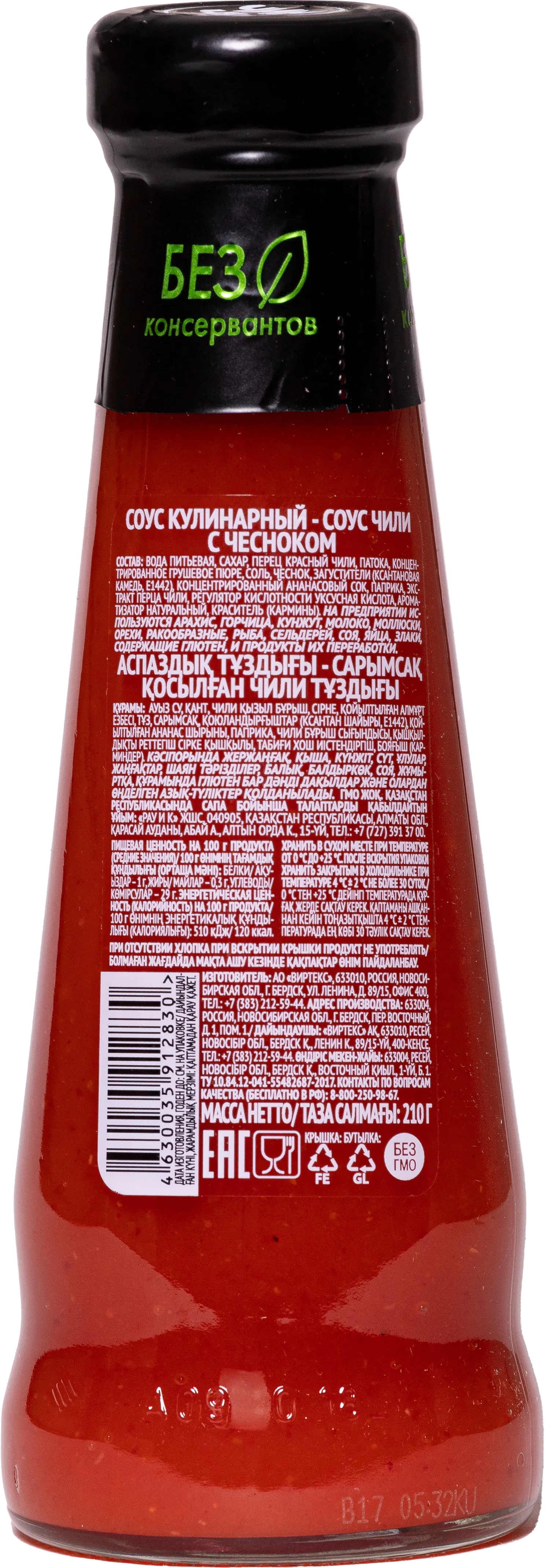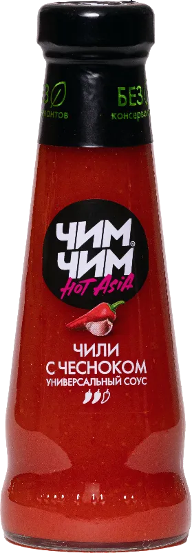 Соус Чили с чесноком, Чим-Чим идеально сочетает остроту чили и аромат чеснока, создавая неповторимый вкус, который оживит любое блюдо. Его насыщенный красный цвет и пикантный аромат мгновенно привлекут внимание гурманов, желающих добавить перчинку в свою еду.