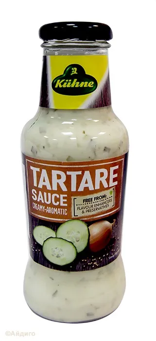 Соус "Тартар" Kuhne. Классический холодный соус французской кухни из яичного желтка, растительного масла, огурцов и лука. Соус Тартар подаётся к блюдам из рыбы и морепродуктов, ростбифу, холодному жаркому, а также служит удачным дополнением к сэндвичам.