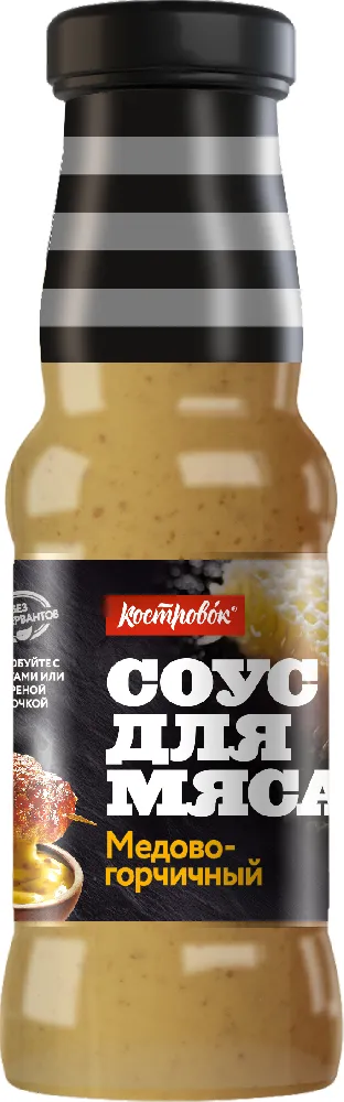 Состав: вода питьевая, масло подсолнечное, сахар, уксус спиртовой, огурцы, горчичное семя , лук репчатый, мед, соль, концентрированный виноградный сок, загустители, яичный желток, мальтодексин, олеорезин красного стручкового перца, регуляторы кислотности/