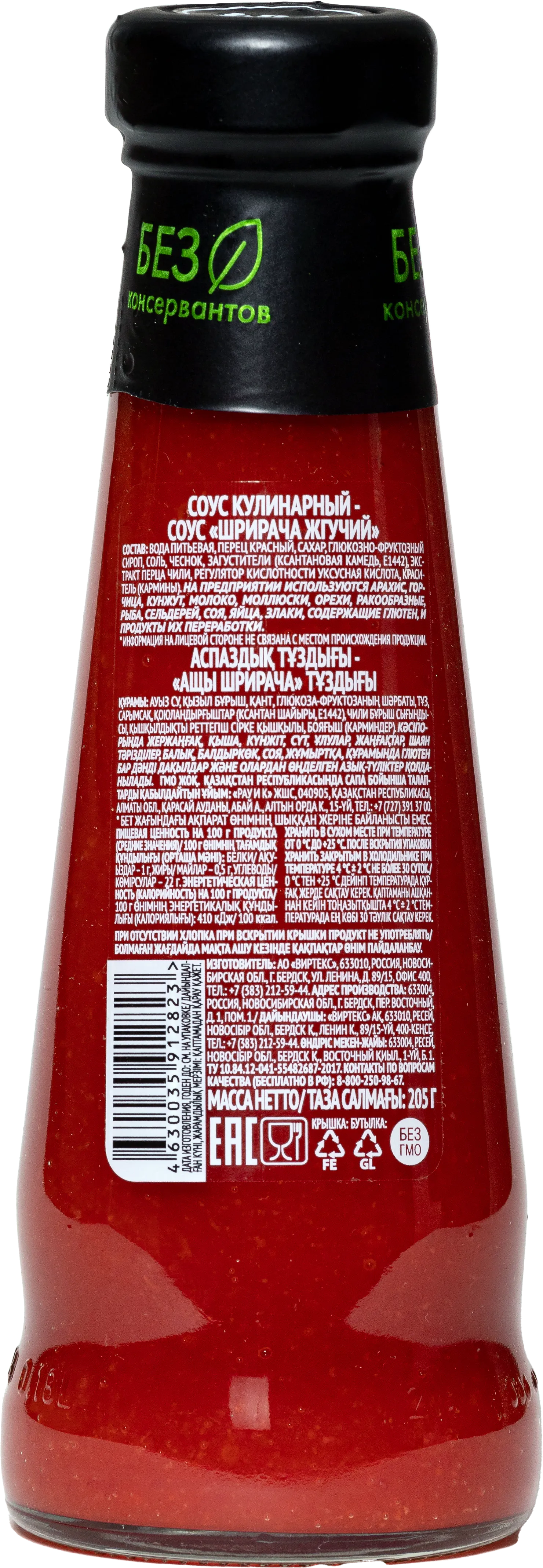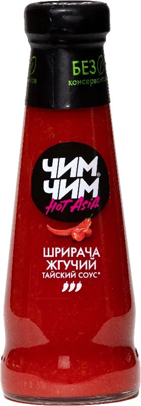 Соус Шрирача жгучий Чим-Чим - это концентрированный взрыв пряного аромата и остроты, приготовленный из отборных свежих чили-перцев, специй и натурального уксуса.