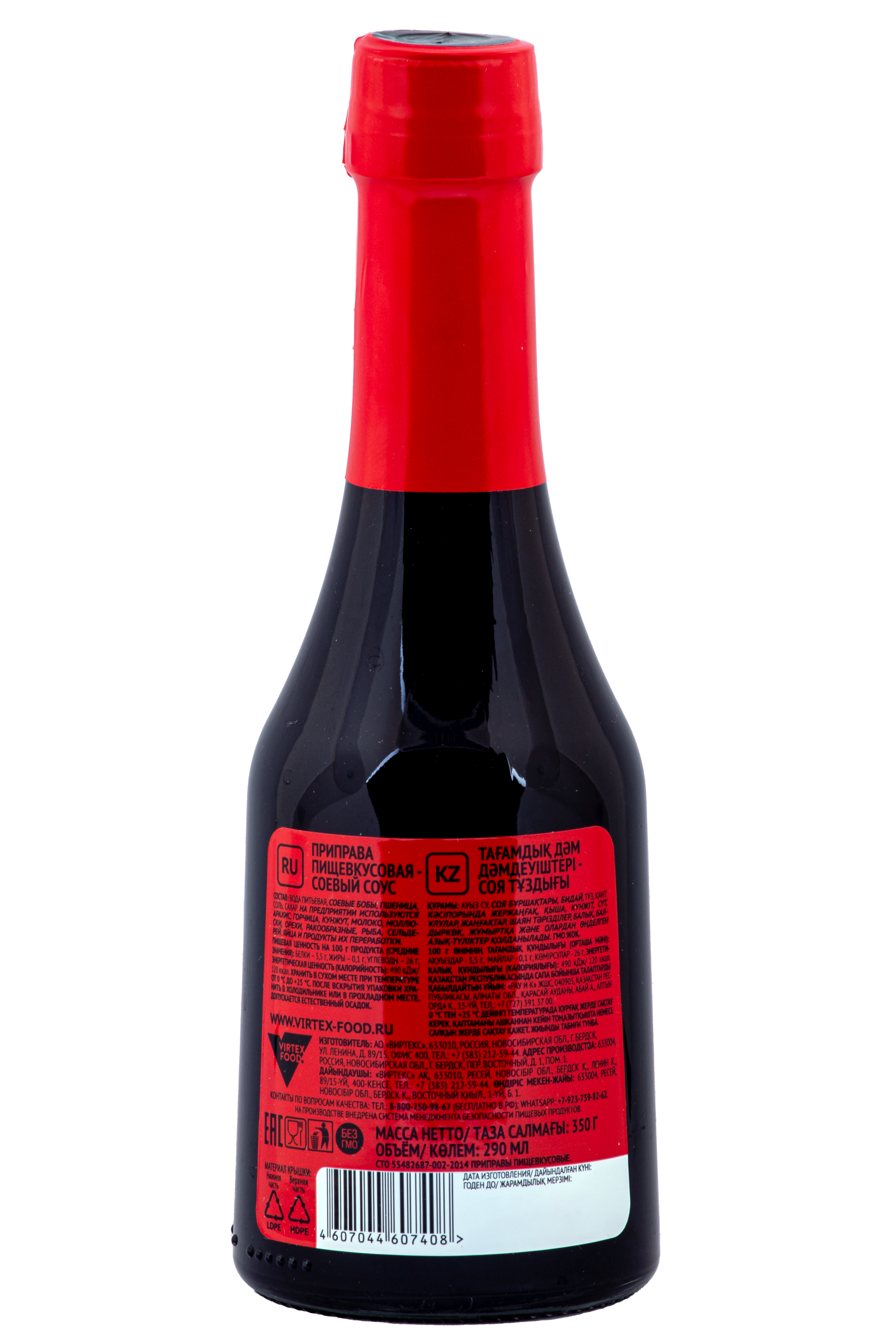 Густой и насыщенный соевый соус в стеклянной бутылке подходит в качестве дип-соуса и соуса для приготовления.