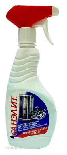 - Средство Санэлит с защитой от плесени для душевых кабин
