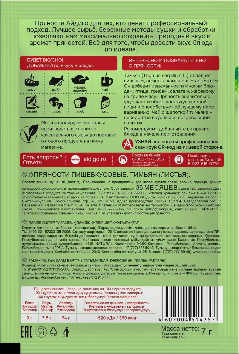 Узнать о гарантиях качества "Айдиго"Тимьян (Чабрец) – важное растение