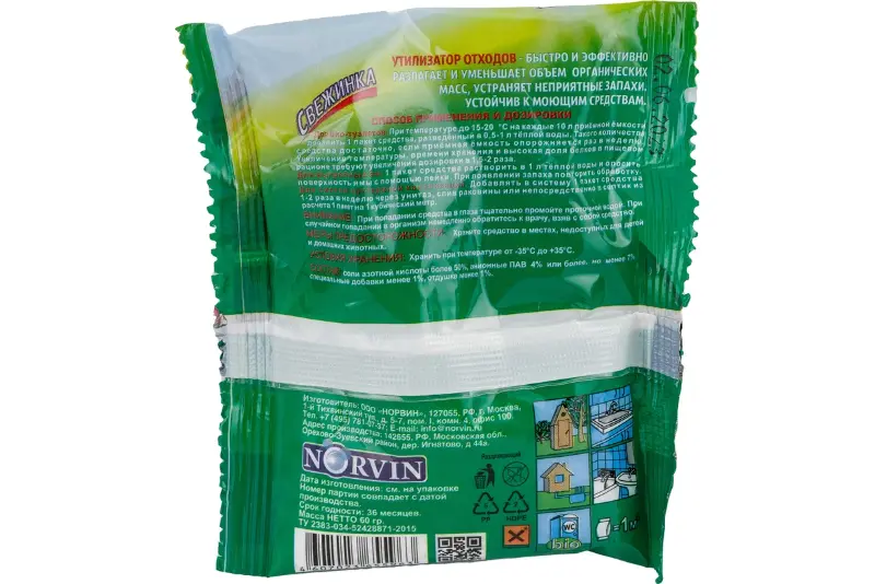 Утилизатор отходов "Свежинка" представляет собой специализированное биоактивное средство, предназначенное для эффективной переработки органических отходов в септиках и биотуалетах. Данный продукт разработан с использованием передовых биотехнологий и содержит комплекс микроорганизмов, способных разлагать все то, что обычно накапливается в системах автономной канализации.