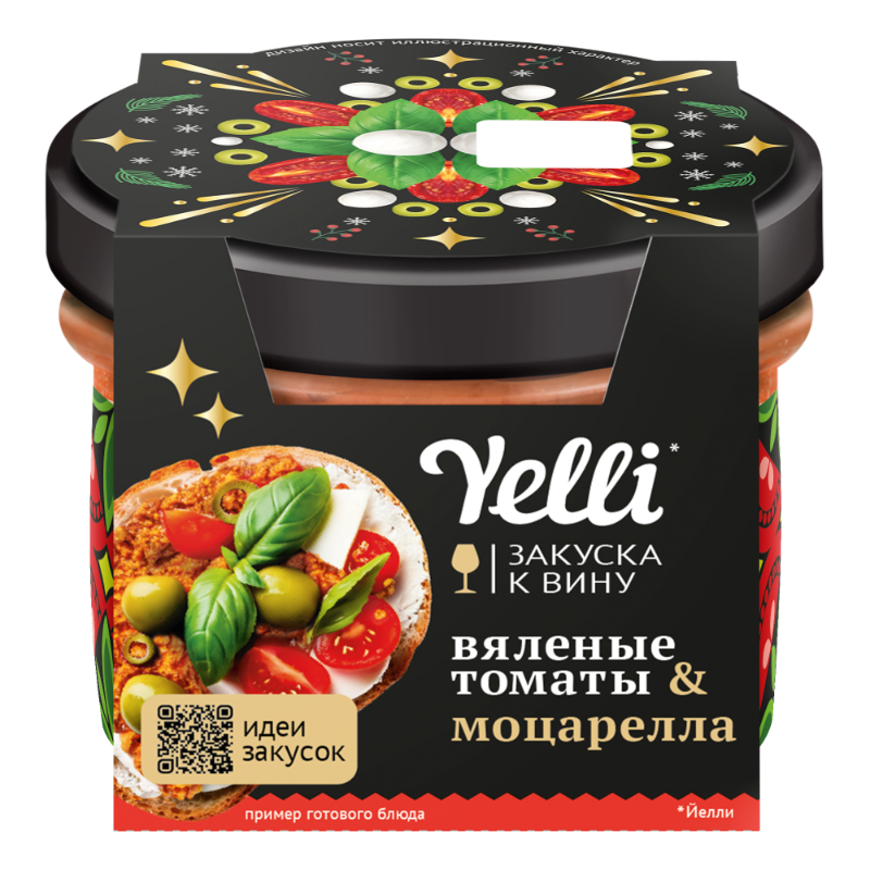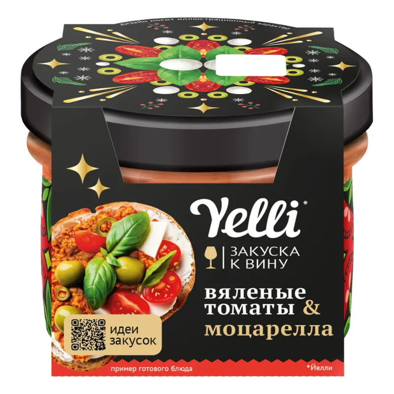 Закуска к вину Happy Tomato/Счастливый томат Yelli - это нежная крем-паста на основе вяленых томатов, мягкой моцареллы, свежего базилика и зелёных оливок. Гармоничное сочетание ингредиентов, вдохновлённое итальянскими кулинарными традициями, превращает обычную закуску в настоящее ресторанное угощение.